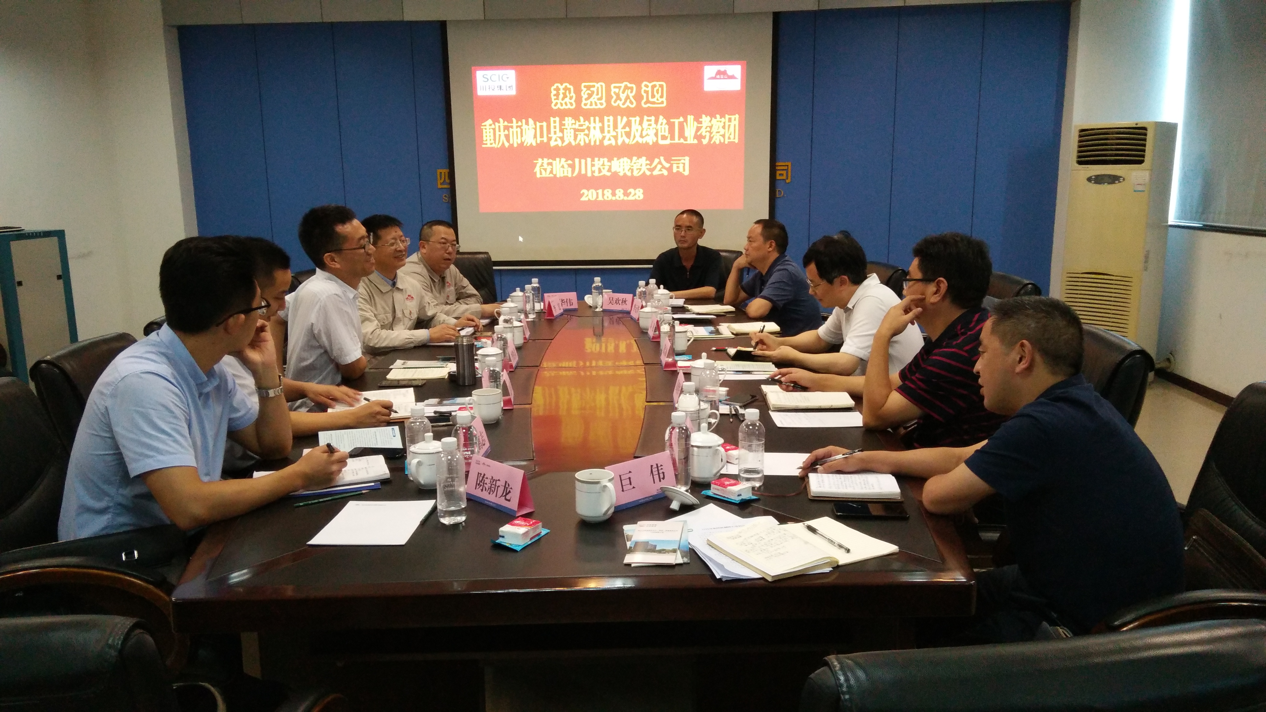 8月28日,重慶市城口縣黃宗林縣長率夏朝華副縣長及綠色工業(yè)考察團一行9人到公司調(diào)研考察。川投集團公司經(jīng)營管理部李勝章部長、戰(zhàn)略投資部王鵬志以及經(jīng)營管理部姜志川、公司黨委書記、總經(jīng)理唐華應(yīng)及全體班子成員和企劃發(fā)展處等部門負(fù)責(zé)人接待和陪同考察。