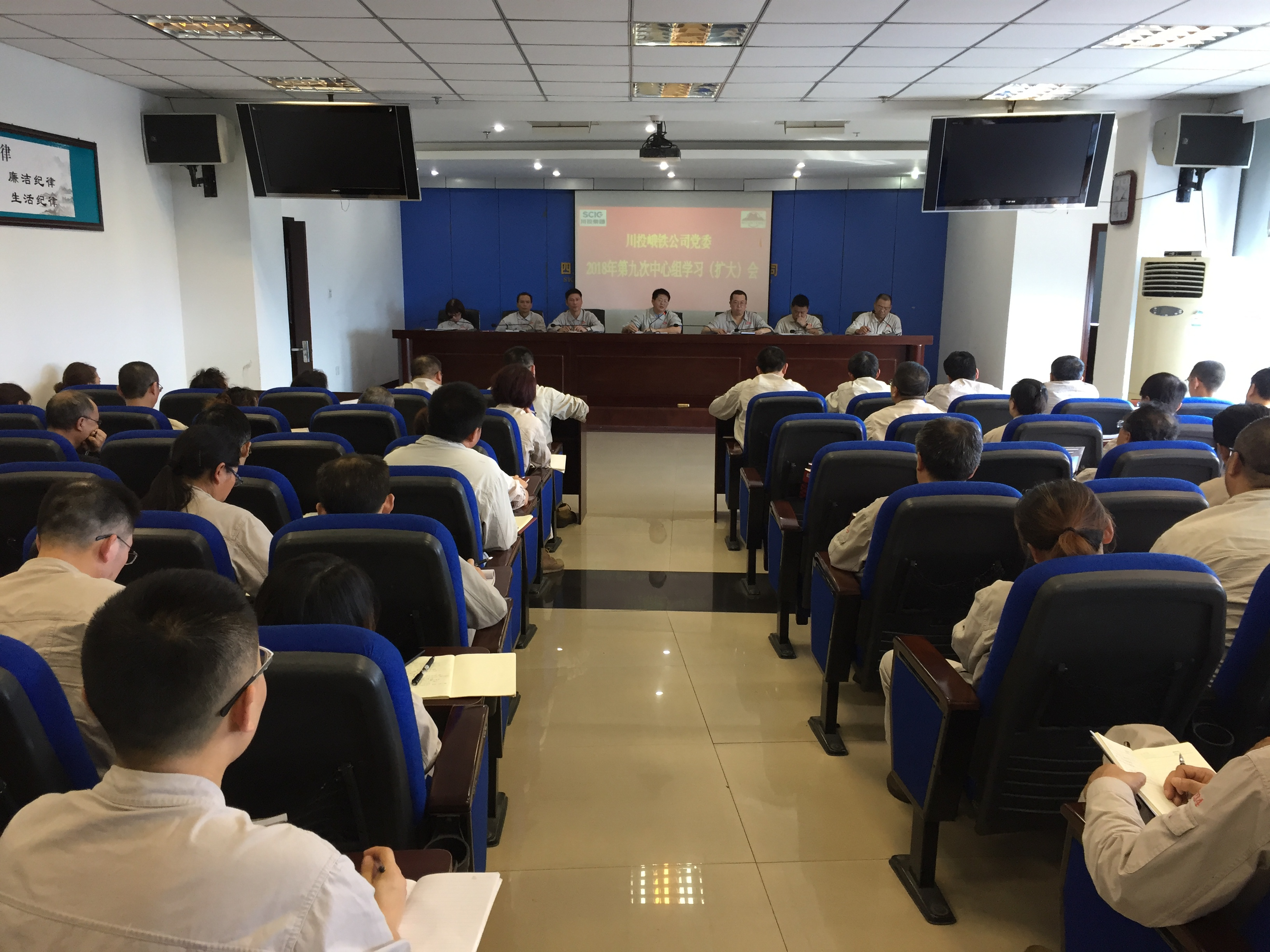 9月17日,川投峨鐵公司黨委在公司1011會(huì)議室召開(kāi)2018年第九次中心組學(xué)習(xí)擴(kuò)大會(huì),在家公司領(lǐng)導(dǎo)、后備及以上中層管理人員共59人參加。會(huì)議由川投峨鐵公司黨委副書(shū)記、紀(jì)委書(shū)記、工會(huì)主席余華偉主持。