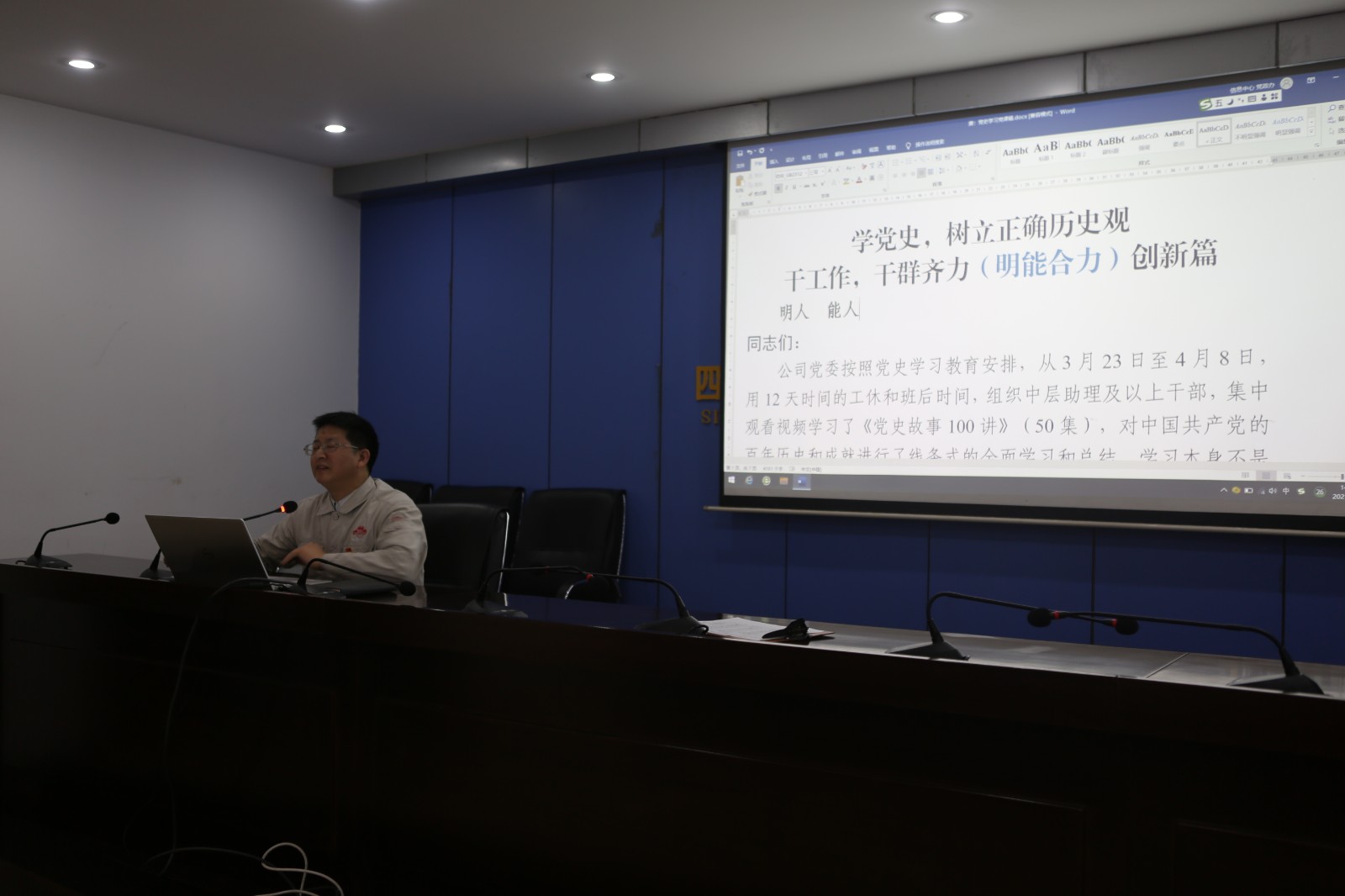 4月13日,川投峨鐵公司黨委書記、董事長唐華應(yīng)同志以《學(xué)黨史、樹立正確歷史觀,干工作、干群齊力創(chuàng)新篇》為題,為全體黨員干部上了一堂生動精彩、凝心聚力的黨課,這是公司黨委集中組織觀看《黨史故事100講》后的首次黨課。