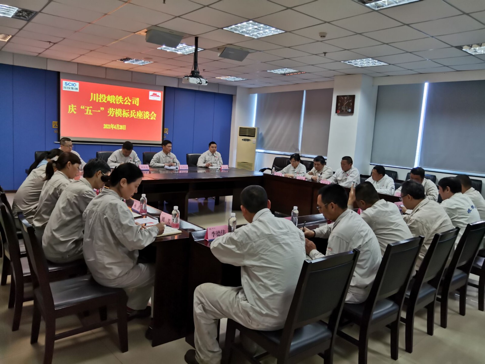為進一步傳承和弘揚勞模精神、勞動精神和工匠精神,教育和引導公司廣大職工為完成2021年生產(chǎn)經(jīng)營目標作出更大貢獻,4月28日,川投峨鐵公司在908會議室召開慶“五一”勞模標兵座談會,川投峨鐵公司黨委副書記、總經(jīng)理陳新龍,黨委副書記、紀委書記、工會主席余華偉,常務副總經(jīng)理李宏、副總經(jīng)理姜志川以及公司在崗樂山市勞動模范、2020年度公司標兵代表以及各黨支部負責人共20人參加。