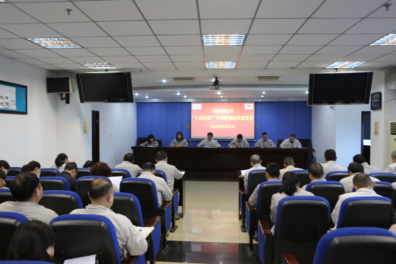 2月17日,川投峨鐵公司在1011會議室召開“十種作派”專項整治動員部署會,川投峨鐵公司黨委書記唐華應出席會議并講話,黨委委員、公司紀委書記丁憲主持會議。