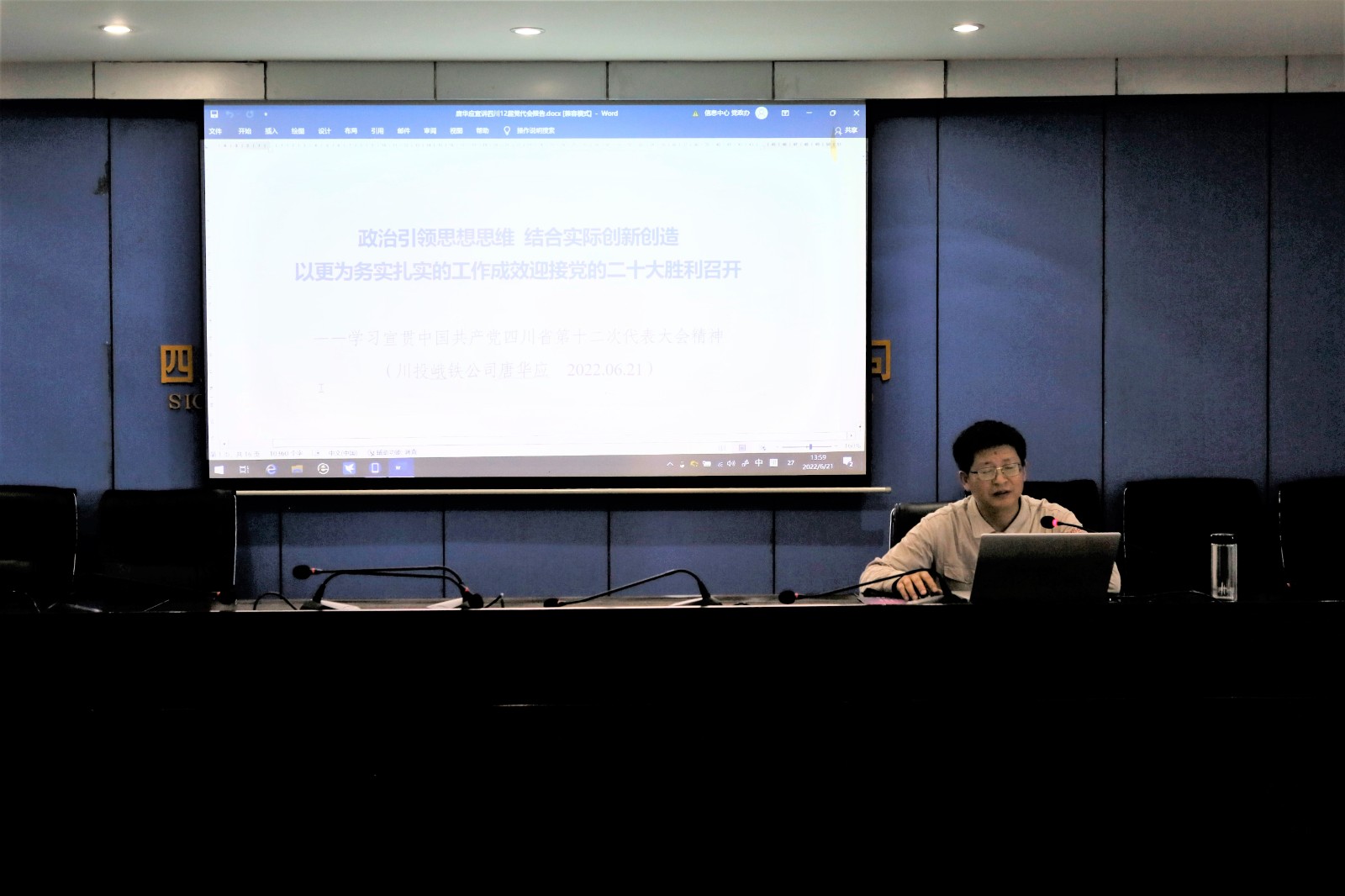 為推進(jìn)公司上下深刻領(lǐng)會(huì)、準(zhǔn)確把握四川省第十二次黨代會(huì)精神,達(dá)到學(xué)以明理、學(xué)以致用的效果,以更加務(wù)實(shí)的作風(fēng)和更為扎實(shí)的業(yè)績(jī)迎接黨的二十大勝利召開。6月21日,川投峨鐵公司黨委書記、董事長(zhǎng)唐華應(yīng)同志在1011會(huì)議室以專題黨課形式宣講省第十二次黨代會(huì)精神。公司班子成員、中層助理及以上管理人員,唐華應(yīng)同志所在生產(chǎn)綜合黨支部黨員參加黨課學(xué)習(xí)會(huì)。