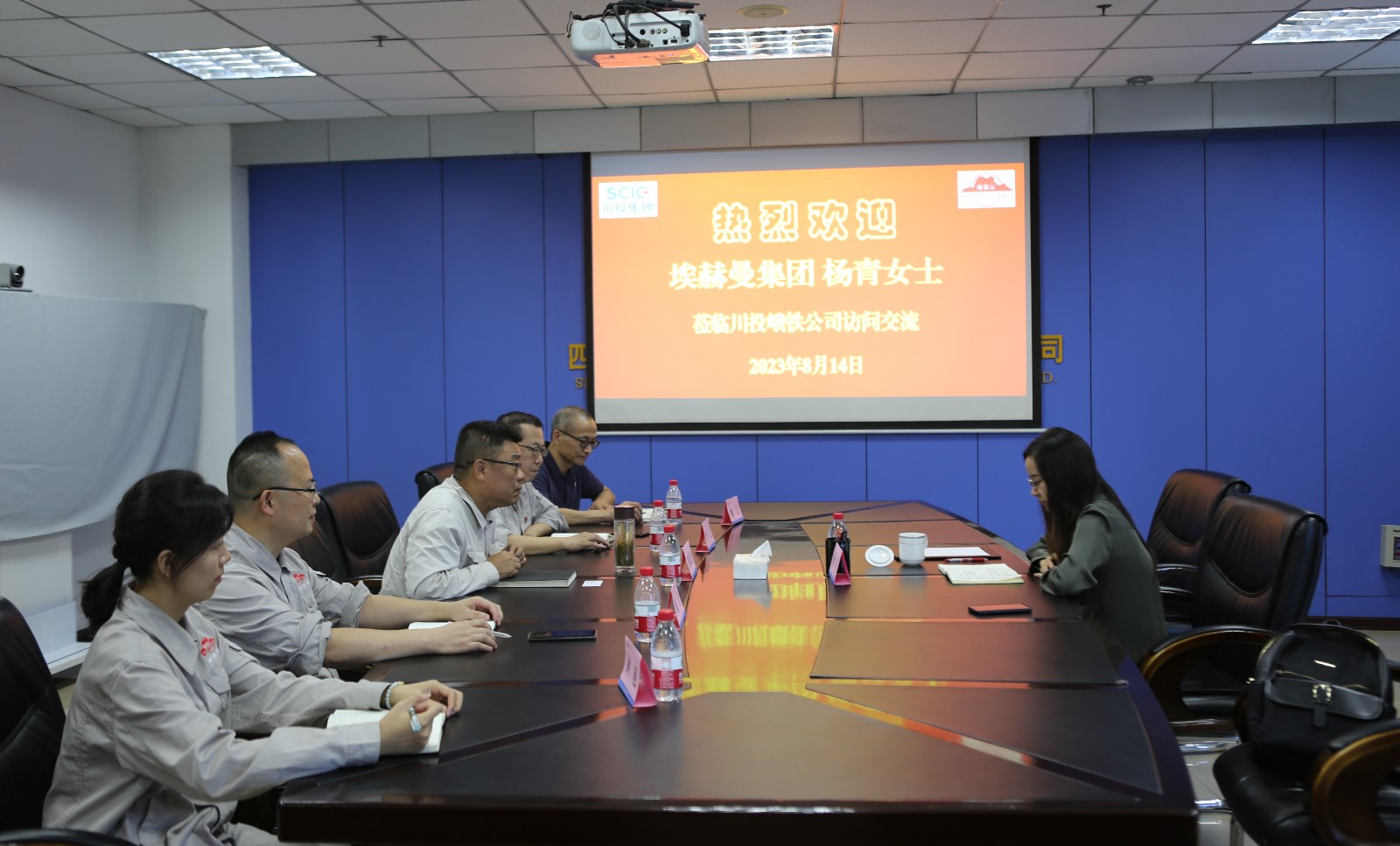 8月14日,埃赫曼集團中國銷售經(jīng)理楊青到訪川投峨鐵公司,川投峨鐵公司黨委副書記、總經(jīng)理陳新龍,黨委委員、常務(wù)副總經(jīng)理李宏在908會議室與來訪客人進行了交流座談。