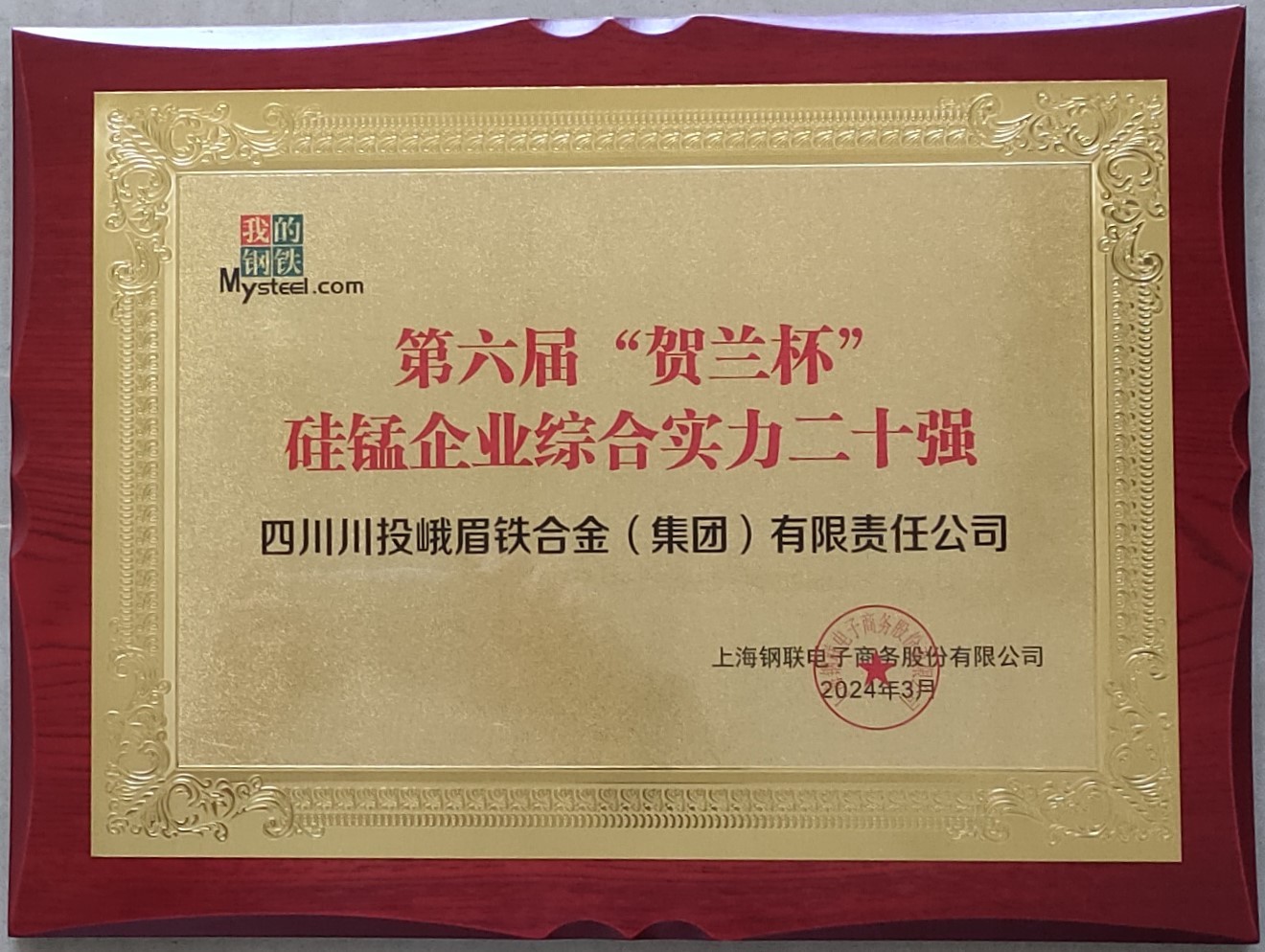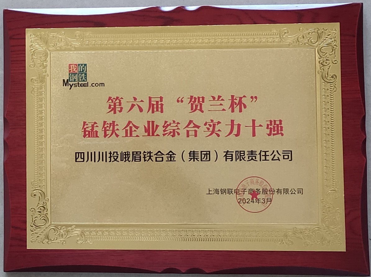 3月27日至29日,在四川成都舉行的“我的鋼鐵”網(wǎng)(Mysteel)“2024年第十屆鐵合金產(chǎn)業(yè)高峰論壇”上,川投峨鐵公司榮獲第六屆“賀蘭杯”硅錳企業(yè)綜合實(shí)力二十強(qiáng)、錳鐵企業(yè)綜合實(shí)力十強(qiáng)兩項(xiàng)殊榮。