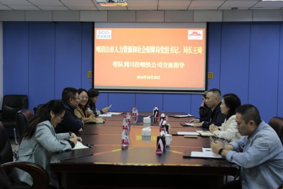10月28日,峨眉山市人力資源和社會保障局黨組書記、局長王琦一行4人到公司交流指導(dǎo)。川投峨鐵公司黨委副書記、總經(jīng)理陳新龍,黨委副書記、工會主席陳瑾在908會議室與到訪人員進行了交流座談。